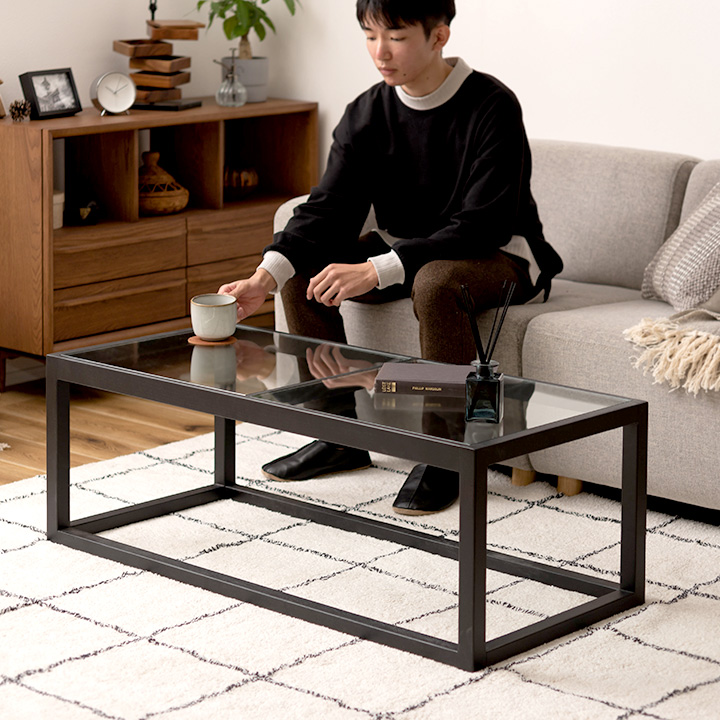 リビングテーブル 幅110 ガラス ブラック