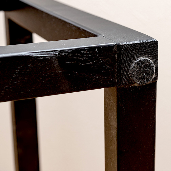 ブラックのアッシュ材フレームはモダンな雰囲気で、どんなインテリアにも自然に調和。読書やティータイムにもぴったりな一台です。