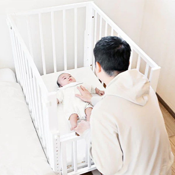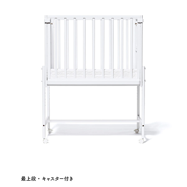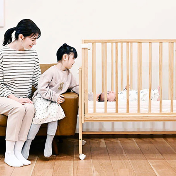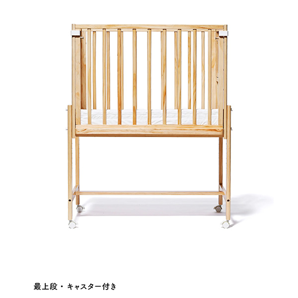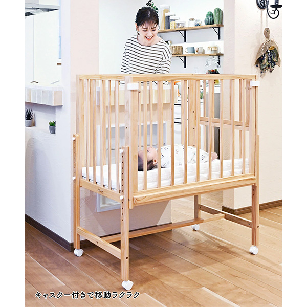 | 備考 | 対象年齢:新生児~24か月以内 スライド開閉式 床板すのこ仕様 4輪キャスター(すべてストッパー付) PSC ・SG検査に合格 ※敷きマットレスサイズ120×70cmのレギュラーサイズのベビー布団をお使いください。 ※ベビーベッドとしての用途以外の使い方はしないでください。 ※複数人数(複数のお子さま)、大人の方の過度の荷重等はおやめください。 ※木製品につき、サイズや重量は誤差が生じることがあります。 ※実際の商品の色と写真では、多少色合いが違って見える場合があります。 |