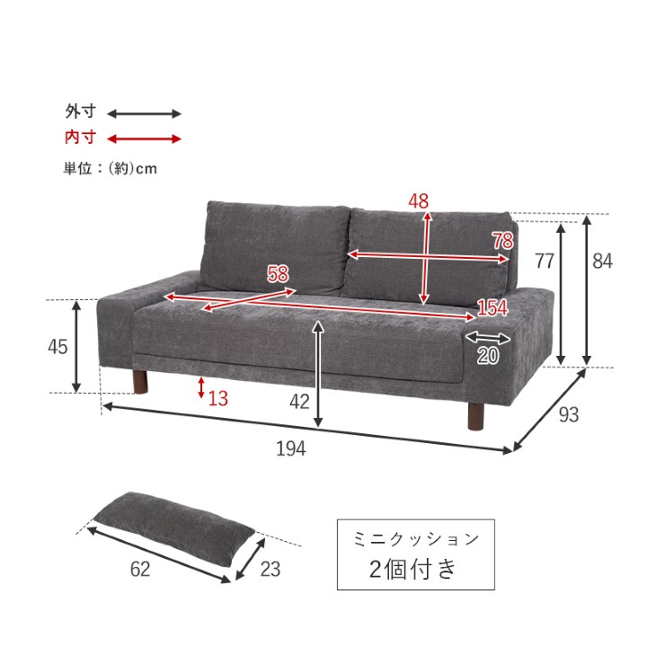 サイズ | 幅194 × 奥行93 × 高さ77 × 座面高42cm |