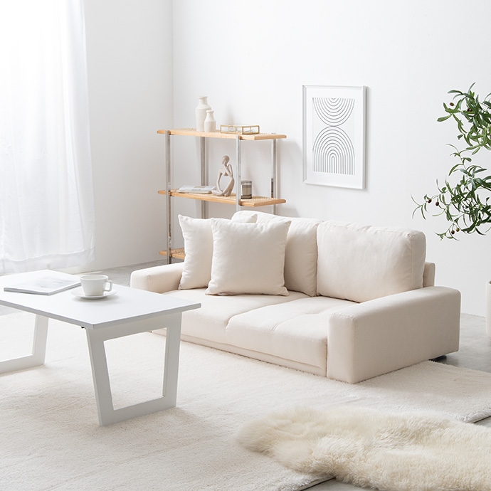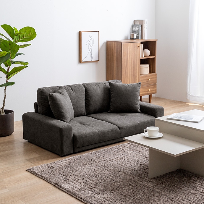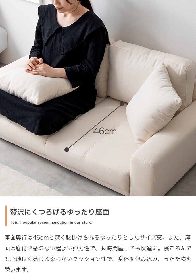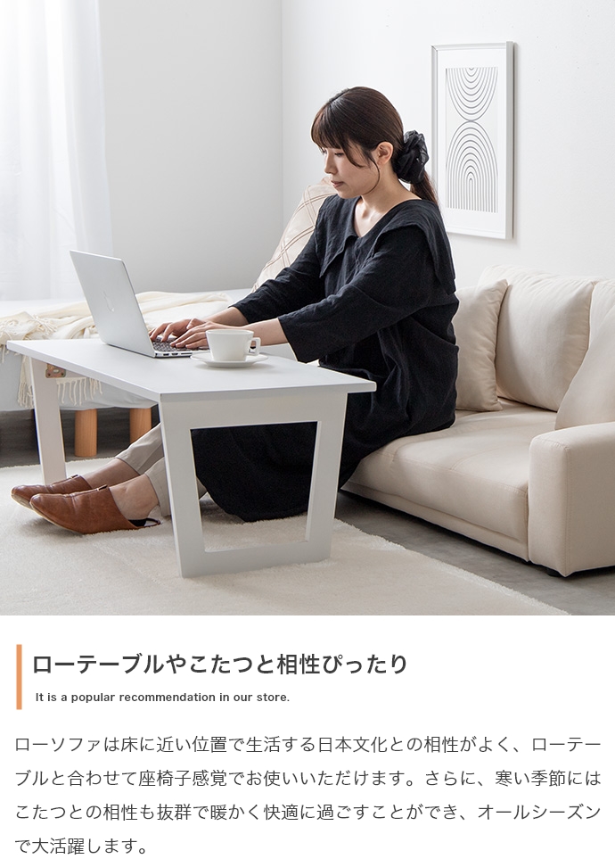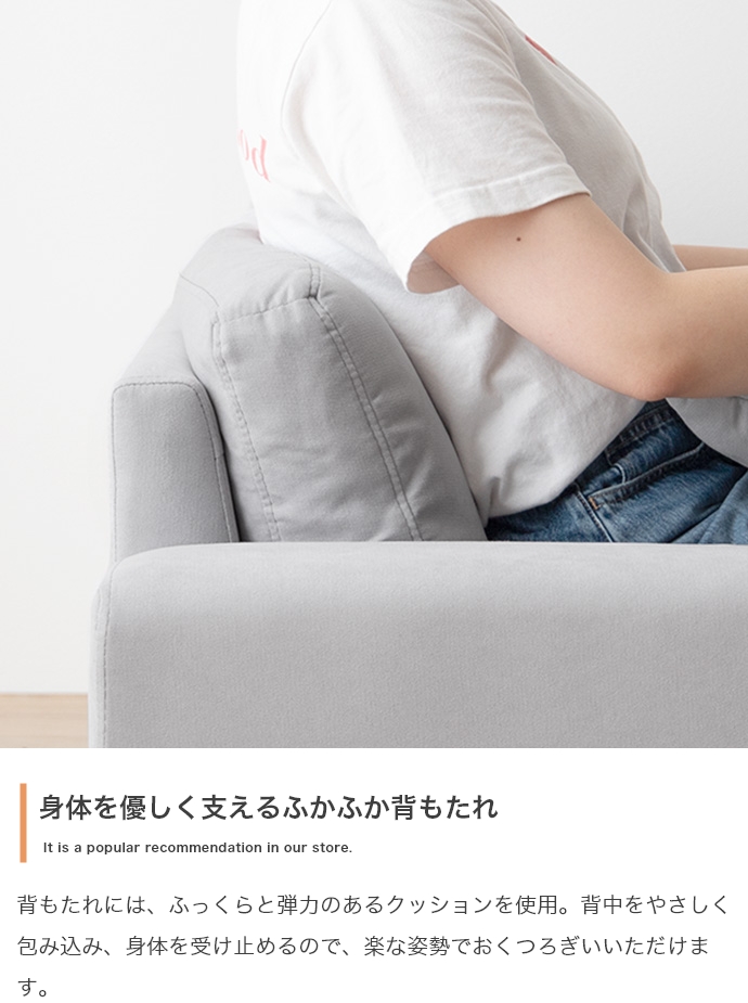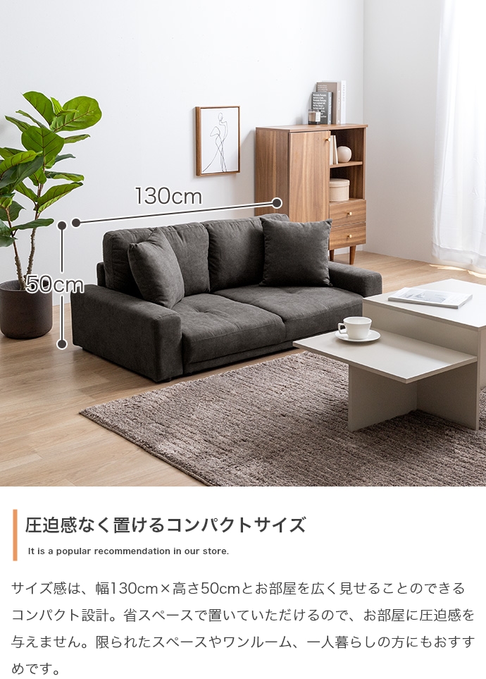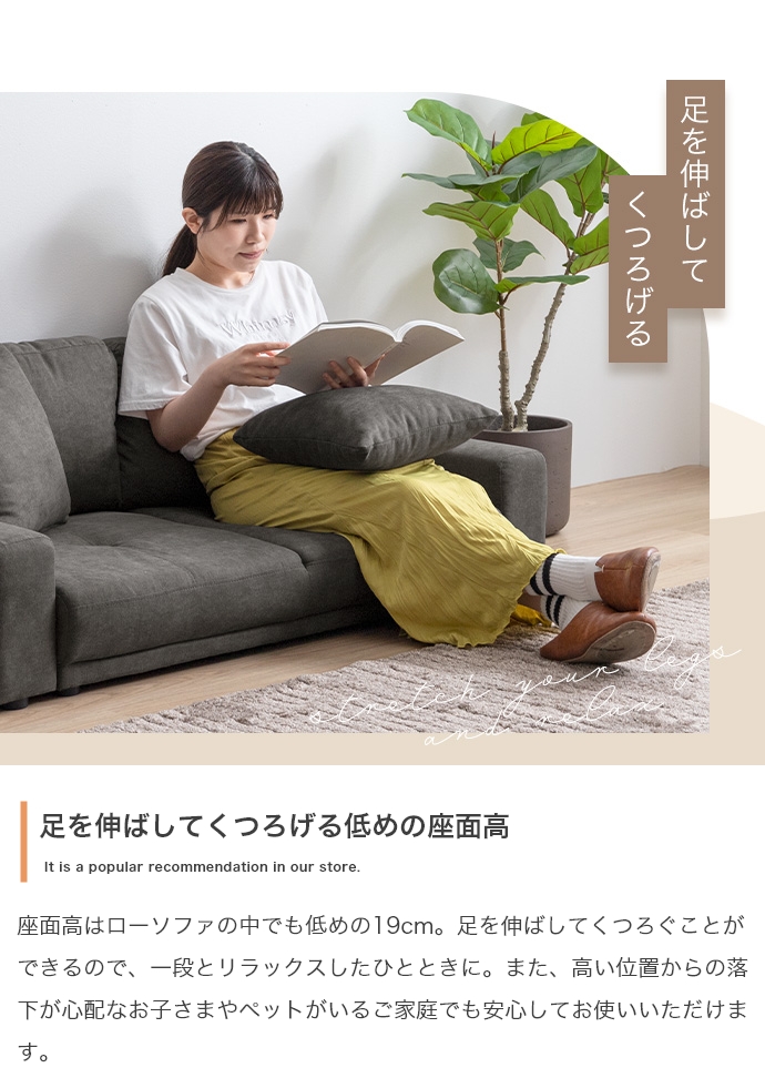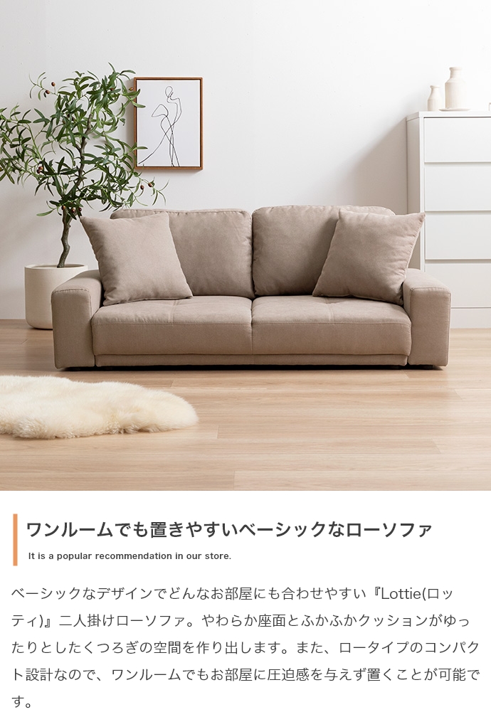 お部屋を広く見せる、ふかふかクッション。一人暮らしに優しいコンパクトローソファ。