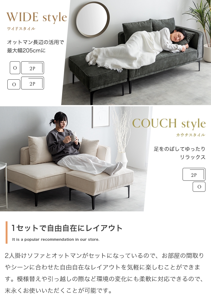 耐荷重 | ■ソファ 約200kg ■オットマン 約150kg |