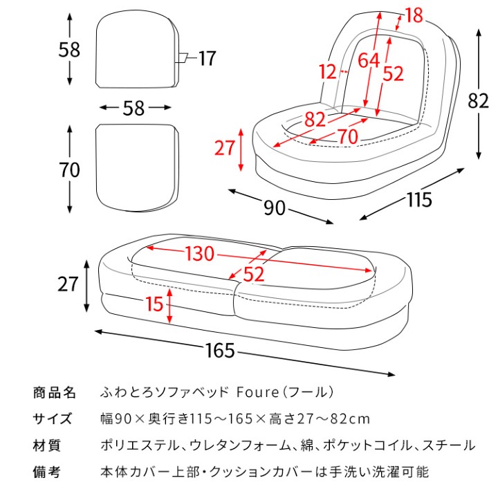 ソファベッド ふわとろ 座椅子 ”Foure” │全4色