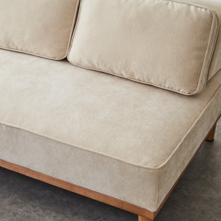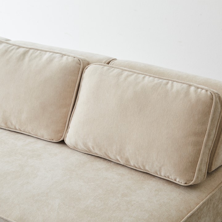 ウレタンフォームとシリコンフィル使用で、程よい弾力とふんわり感を実現。 深めの奥行きで、脚を伸ばしたり寝転んだり、思い思いのリラックスタイムを。