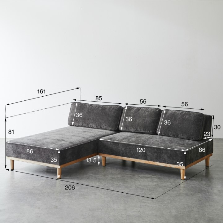 カウチ:幅86 × 奥行161 × 高さ81cm |