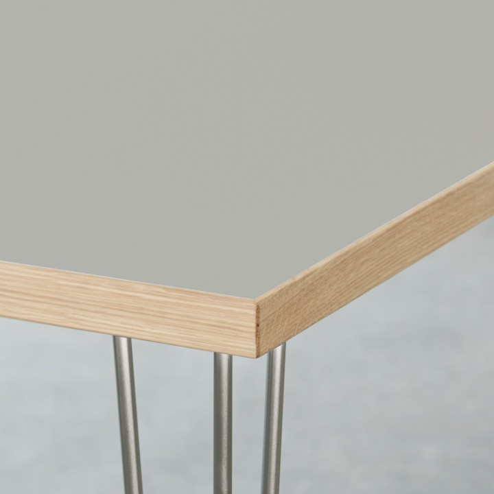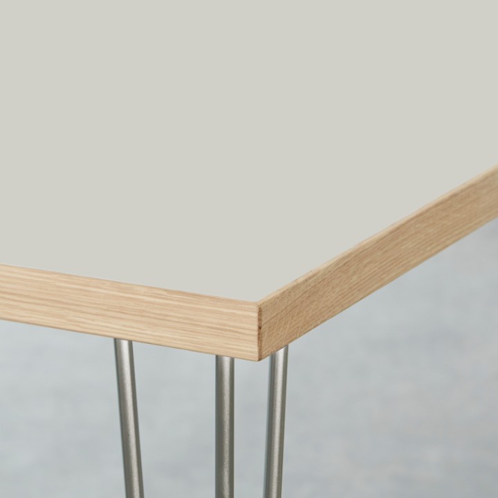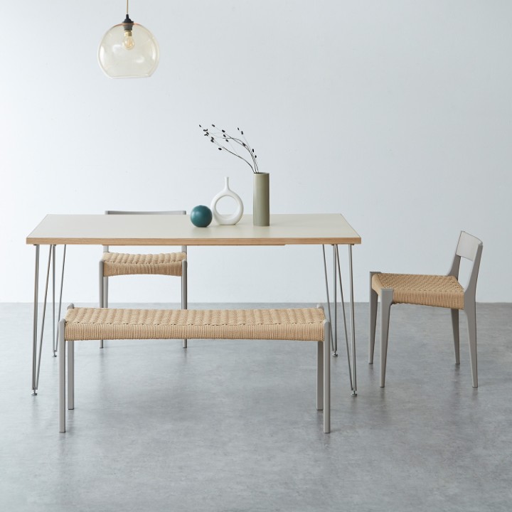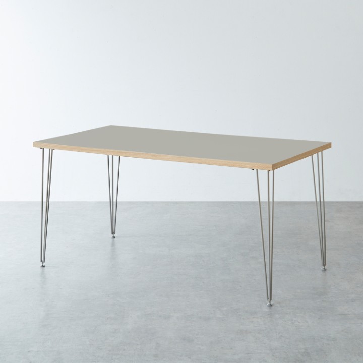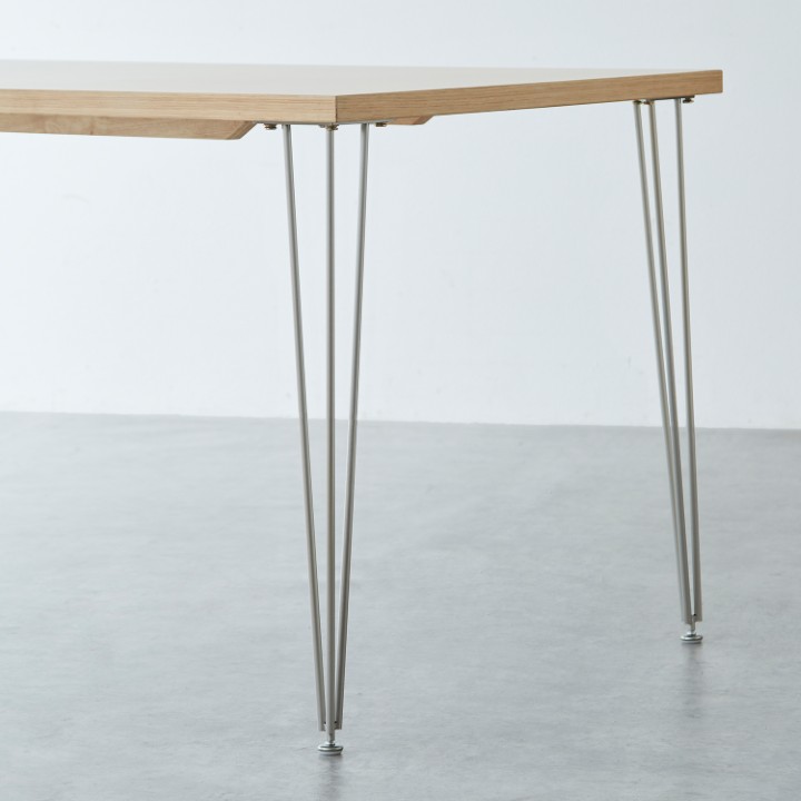 空間にすっと馴染む控えめな美しさを持ちながら、見る角度によって表情を変える金属脚が洗練された印象を与えます。シンプルでいて存在感があり、暮らしにほどよい緊張感と彩りをもたらす、そんな一台に仕上がりました。