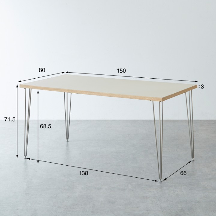 メラミン天板 ダイニングテーブル 幅150cm / ステンレス脚