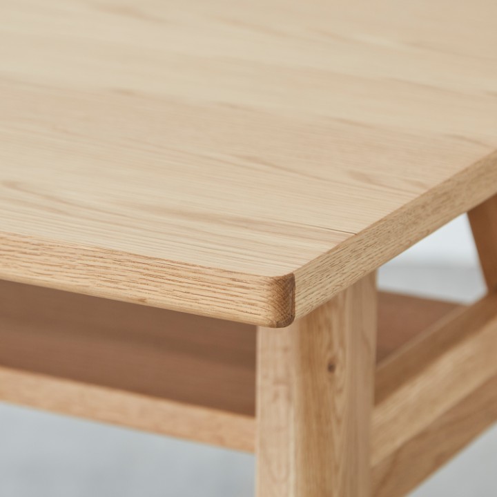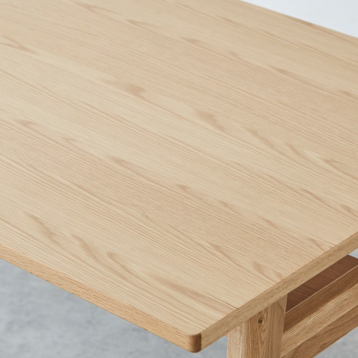 天板下には便利な棚収納を備え、読みかけの雑誌や小物をさっと片付けることができ、テーブル周りをすっきりと保てます。