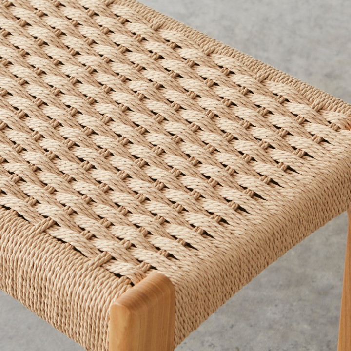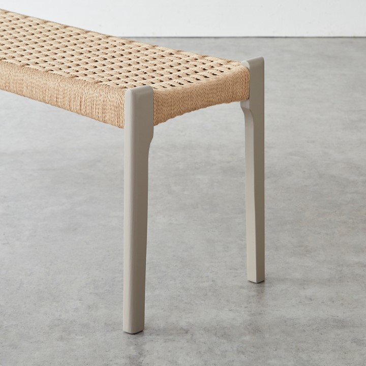 職人の手で丁寧に編み込まれた座面と、すっきりとしたフォルムが魅力のベンチです。