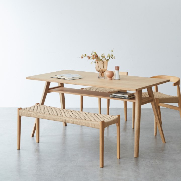 アッシュ無垢材とペーパーコードが織りなす、素朴で美しい佇まい。