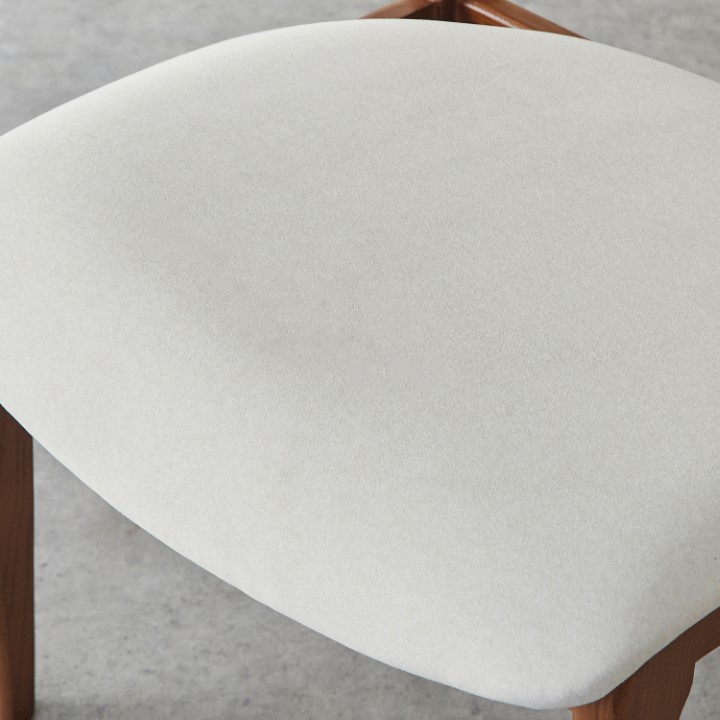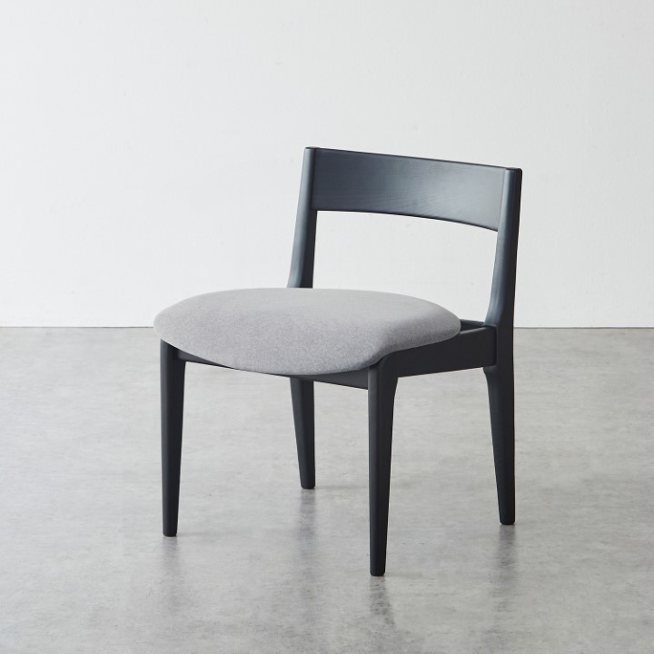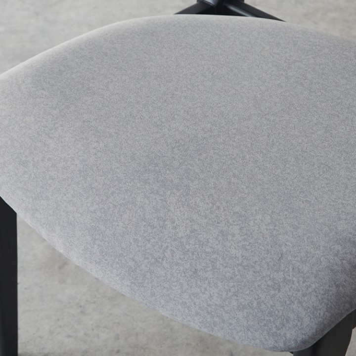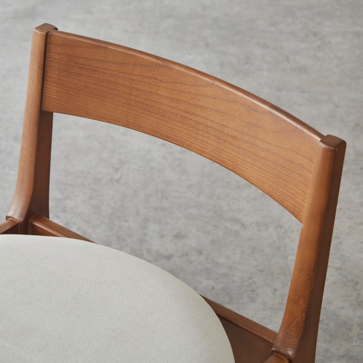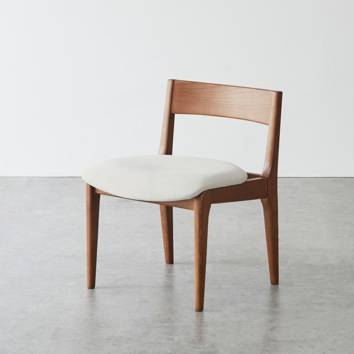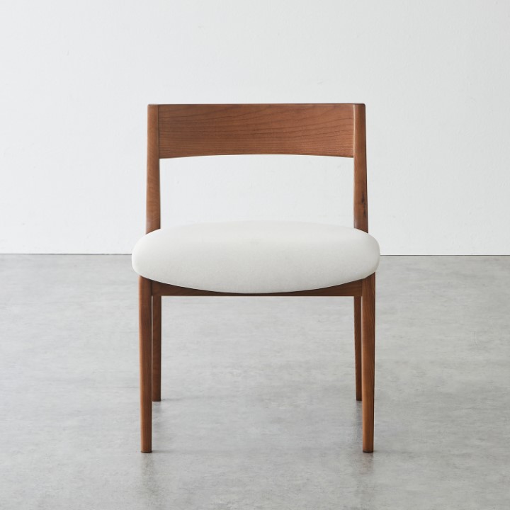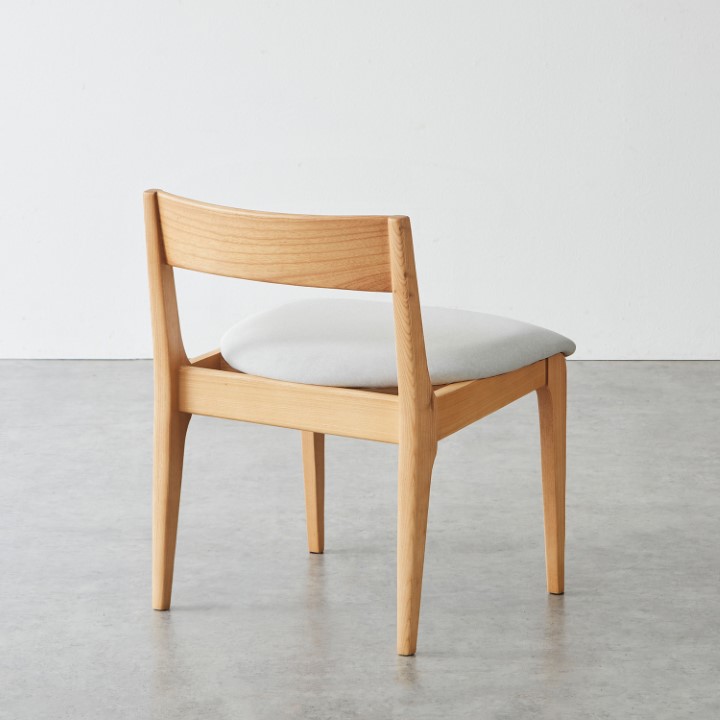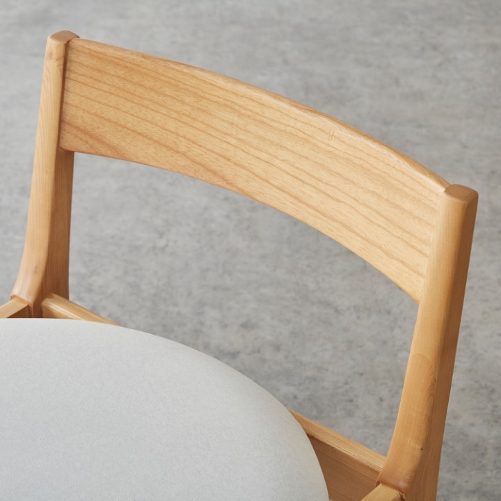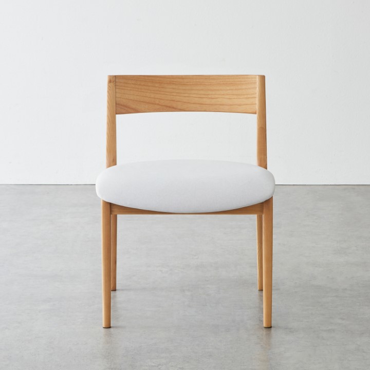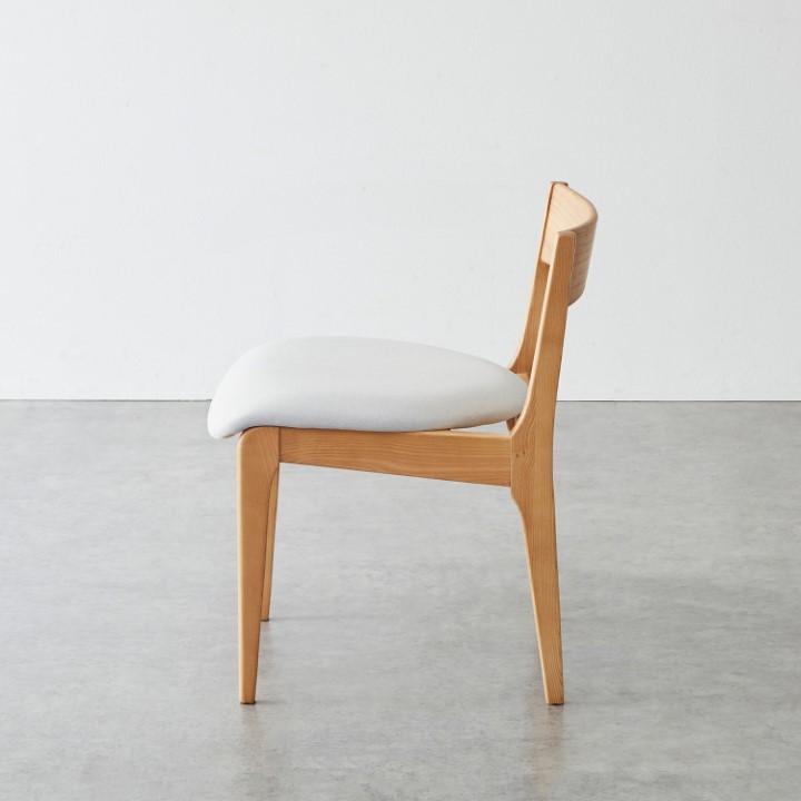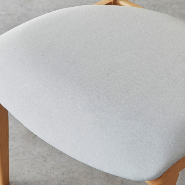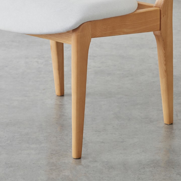 天然木アッシュ材とファブリックの柔らかな風合いが調和するアームレスチェア。 シンプルながら洗練されたデザインで、ダイニングからワークスペースまで幅広く活躍し、限られたスペースでも美しくフィットします。