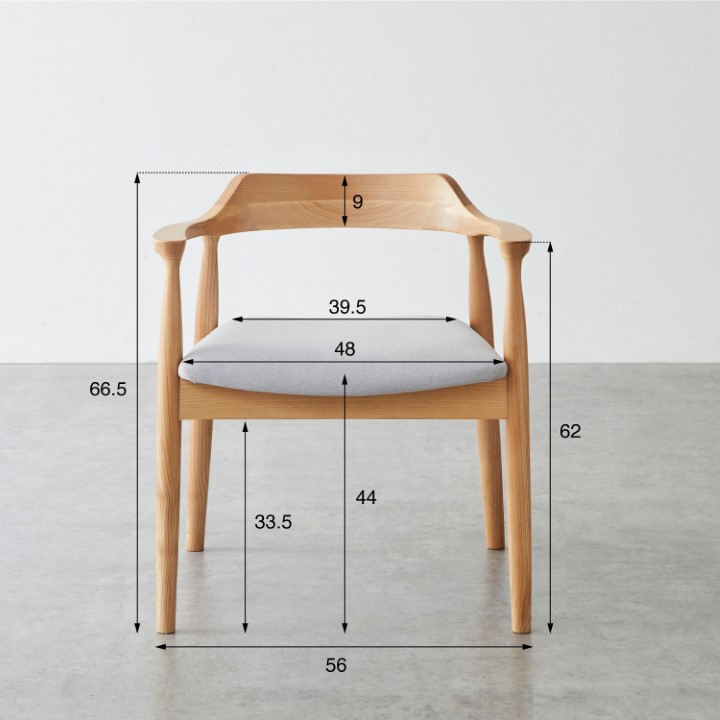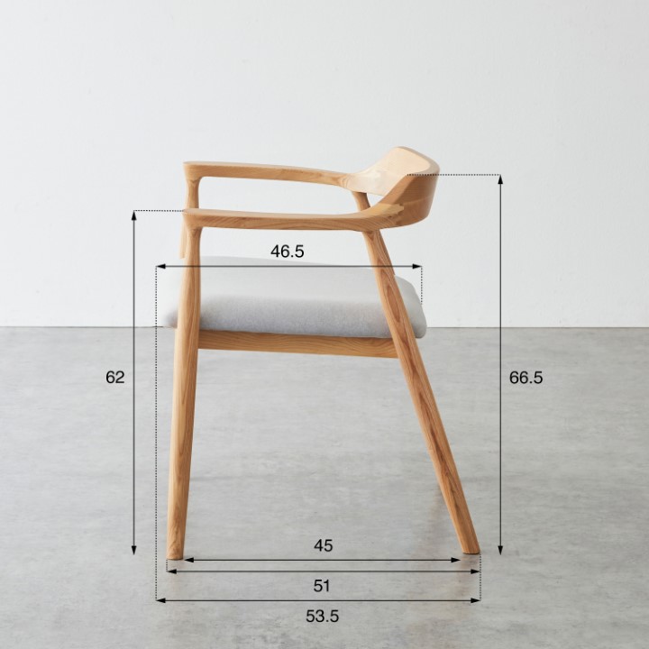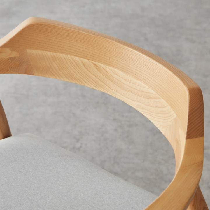 天然木アッシュ材を贅沢に使用した、美しいシルエットが印象的な木製アームチェア。