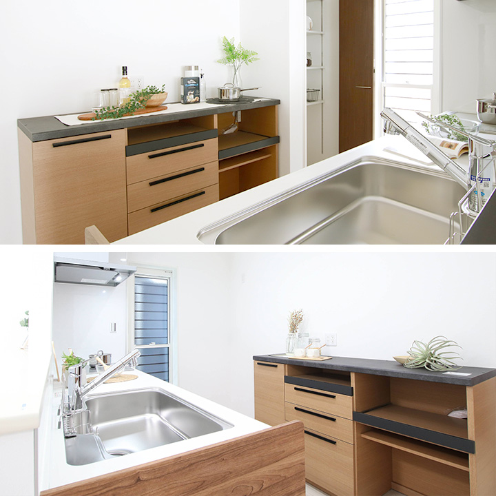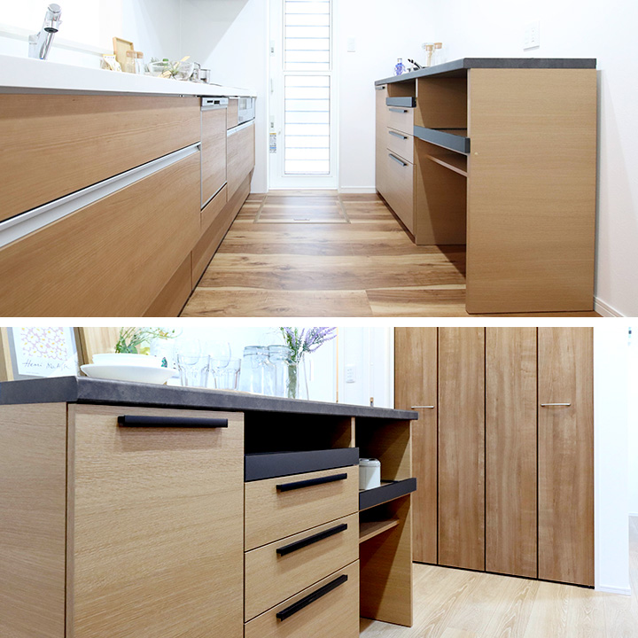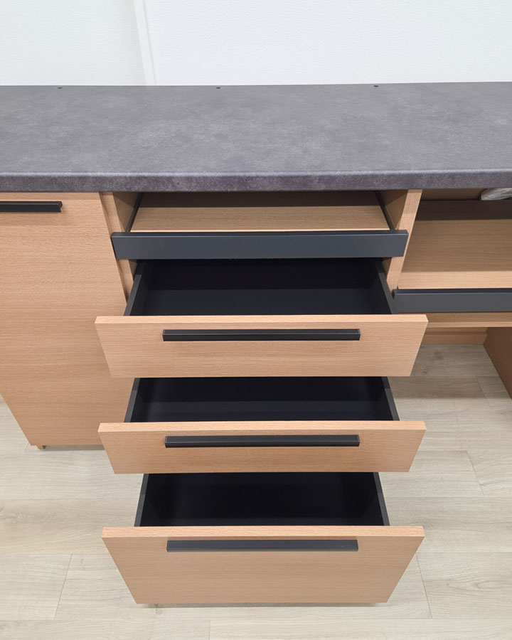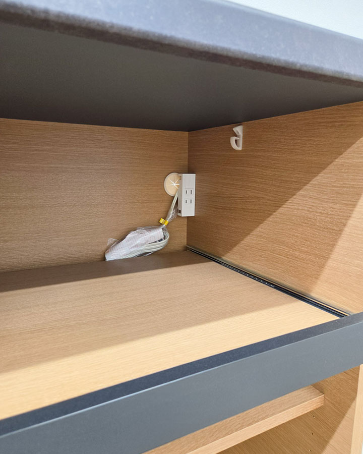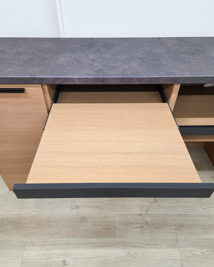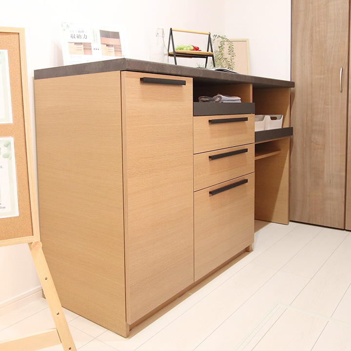 ・引出しにはフルスライド仕様のサイレントレールを搭載しており、奥の物までスムーズかつ静かに取り出せます
