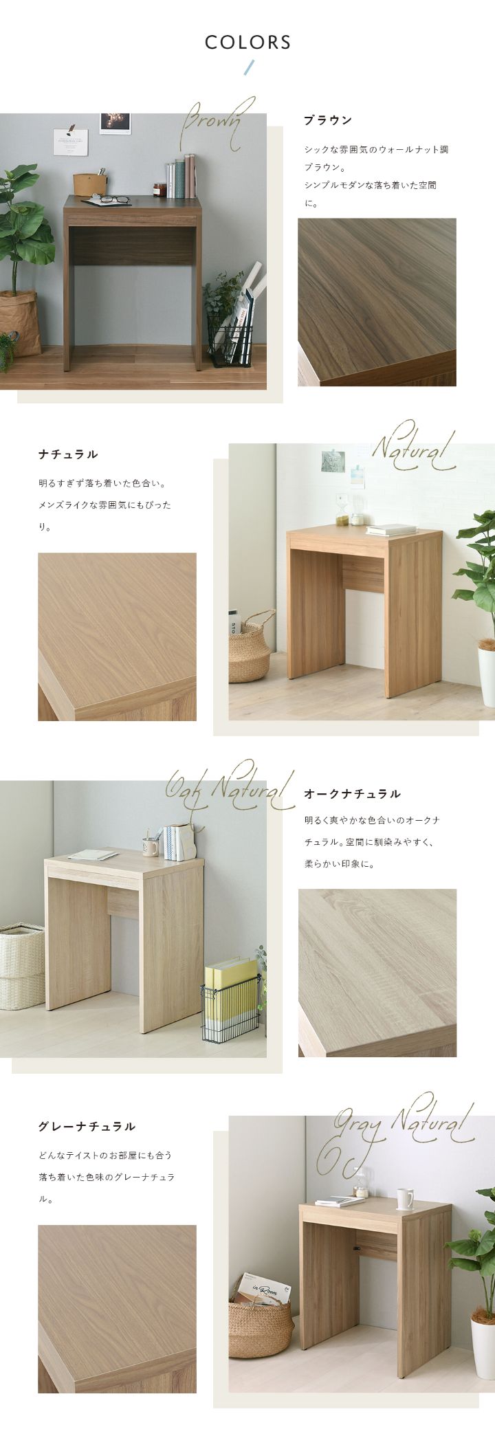 グレーナチュラル,ブラウン,オークナチュラル