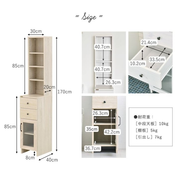 [天板]10kg、[棚板]5kg、[引出し]7kg |