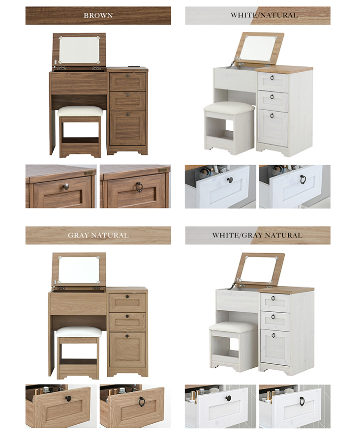 天板を開ければ、そこはあなただけの特別なメイクスペース。メイクが終わったら、天板をパタンと閉じるだけ。お洒落なデスクに早変わりします。
