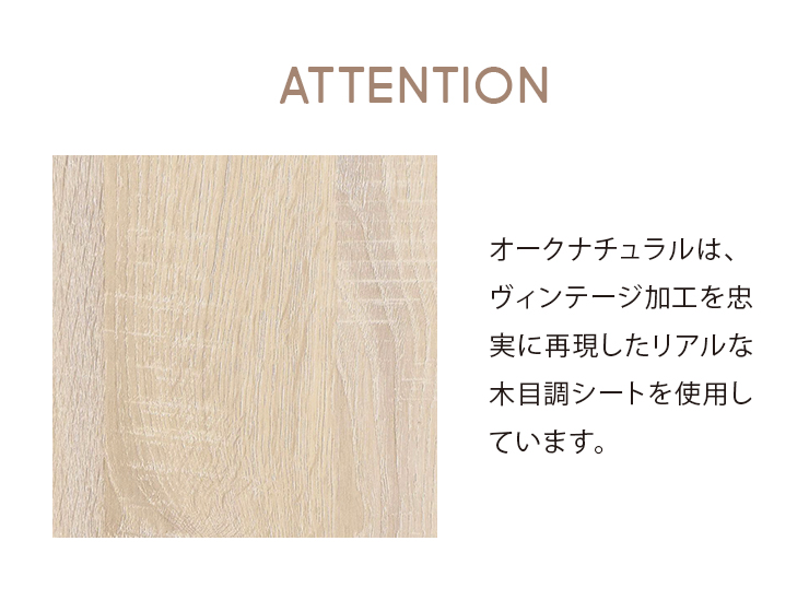 ※オークナチュラル色は、ヴィンテージ風(ダメージ風)の木目柄シートとなっておりますので、予めご了承ください。 |
