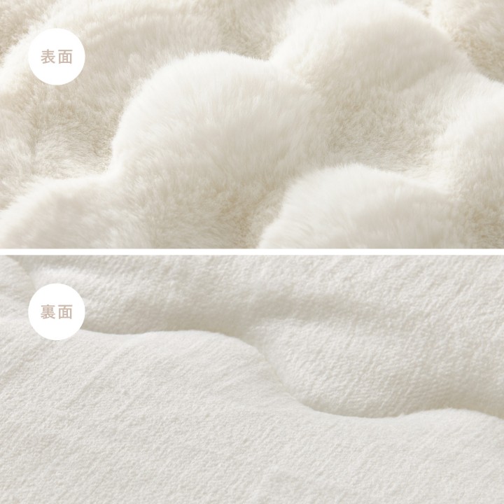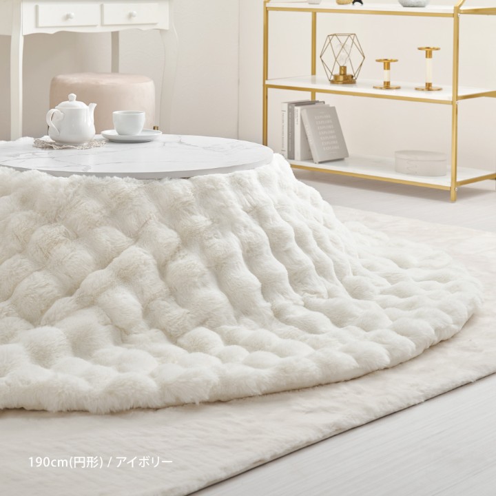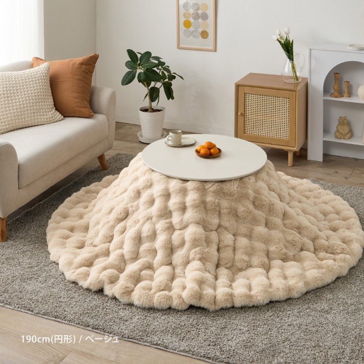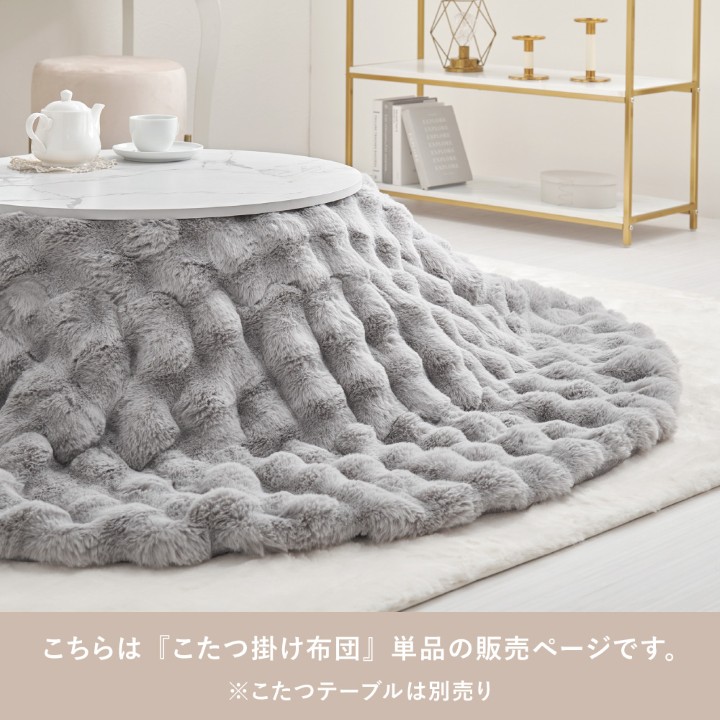 うさぎの毛並みを表現した「ラビットファー調」は、きめ細やかでうっとりするような、なめらかな肌ざわり。 やさしく包み込むようなふわふわタッチに、ぽこぽことした見た目も可愛いおしゃれなこたつ布団です。