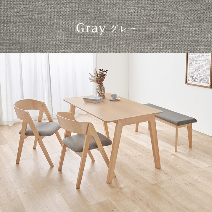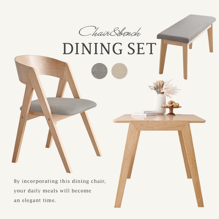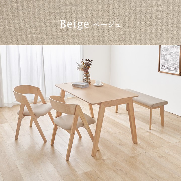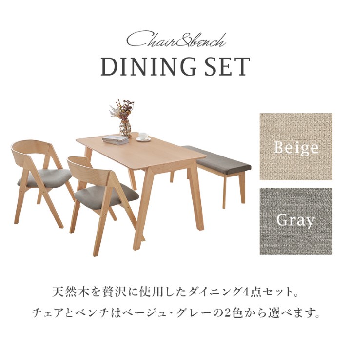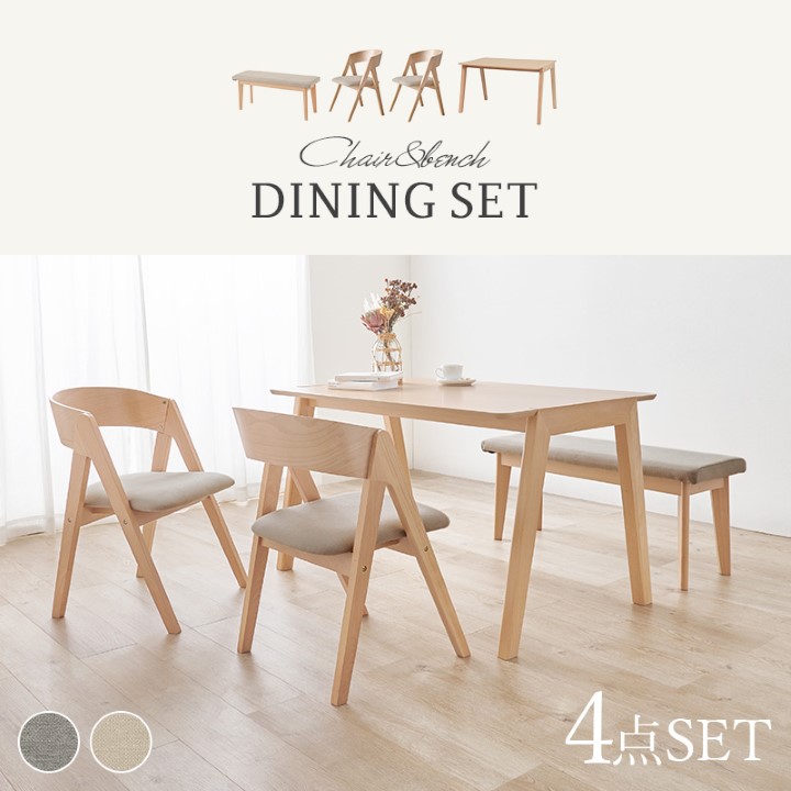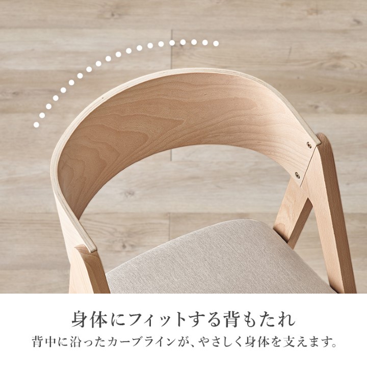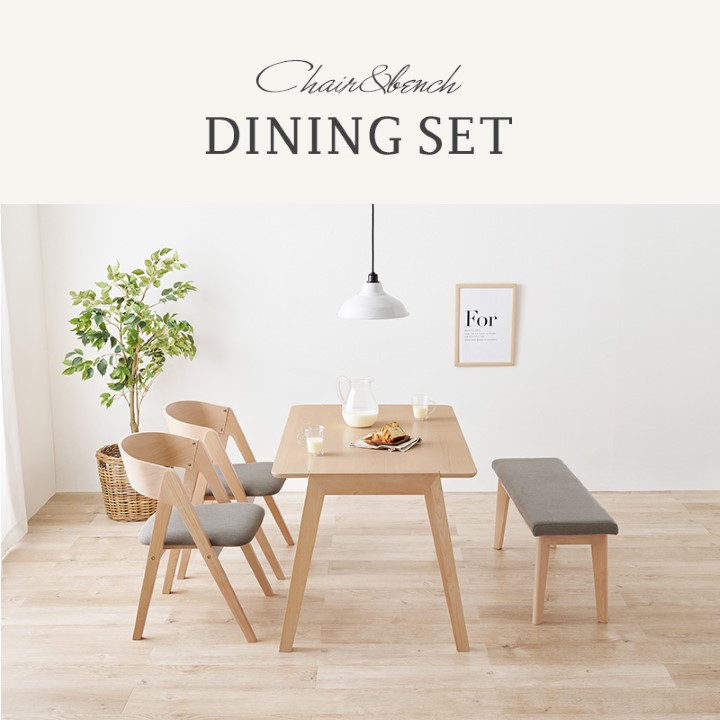 天然木を贅沢に使用したダイニング4点セット。 直線と曲線の調和のとれたシルエットがダイニング空間を北欧モダンな雰囲気に。