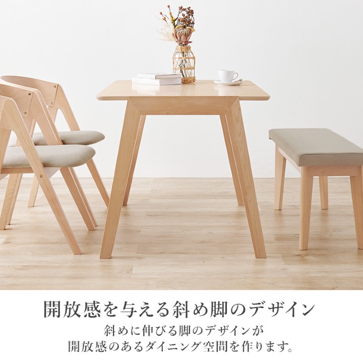 【POINT 1】天然木を贅沢に使用 天然木を贅沢に使用したダイニング4点セット。