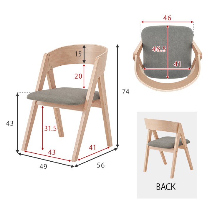 チェア:(約)幅49 × 奥行56 × 高さ74 × 座面高43cm |