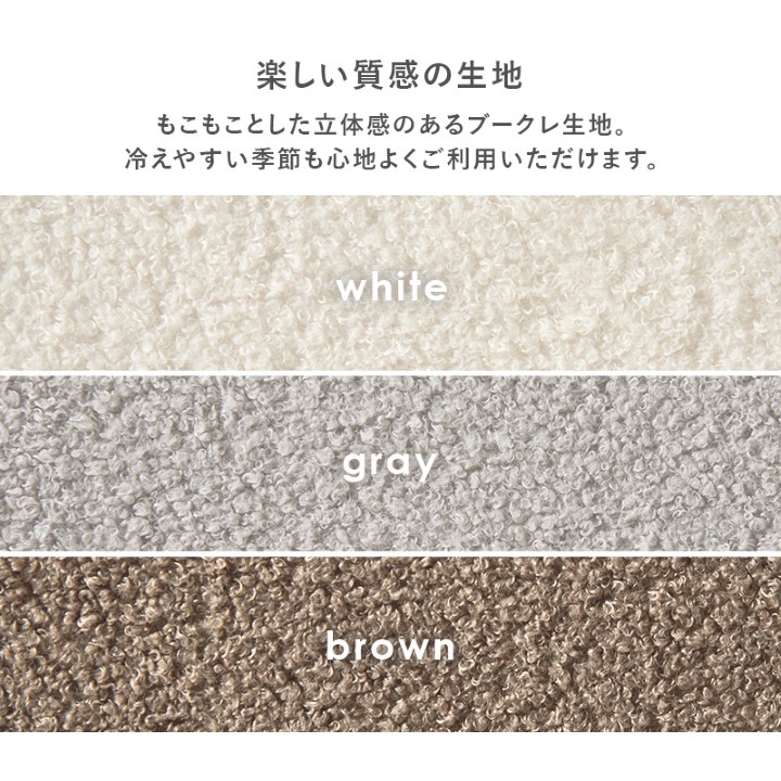 | カラー | ナチュラル/ブークレホワイト,ナチュラル/ブークレグレー,ホワイト/ブークレブラウン,ナチュラル/ブークレブラウン,ホワイト/ブークレグレー,ホワイト/ブークレホワイト |