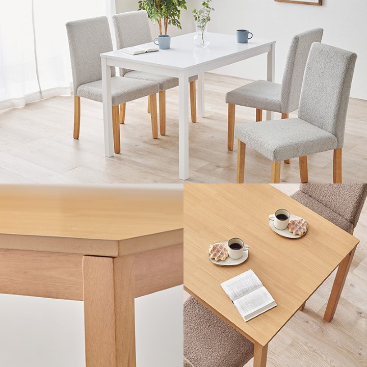 | 素材 | 主材:天然木 天板:<ナチュラル>天然木化粧繊維板<ホワイト>MDF 張地:ポリエステル |