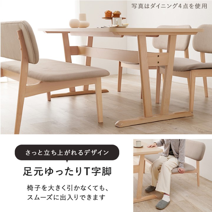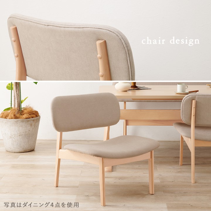 【POINT 1】空間を広く見せる低めの設計 空間が広く感じられる低めのダイニングセットです。