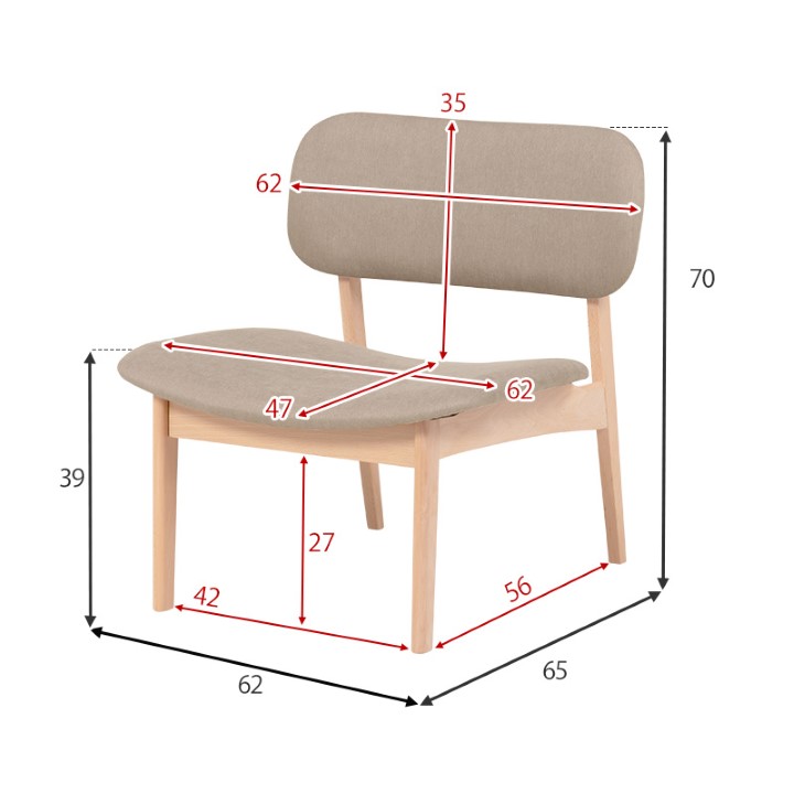 チェア:(約)幅62 × 奥行65 × 高さ70 × 座面高39cm |