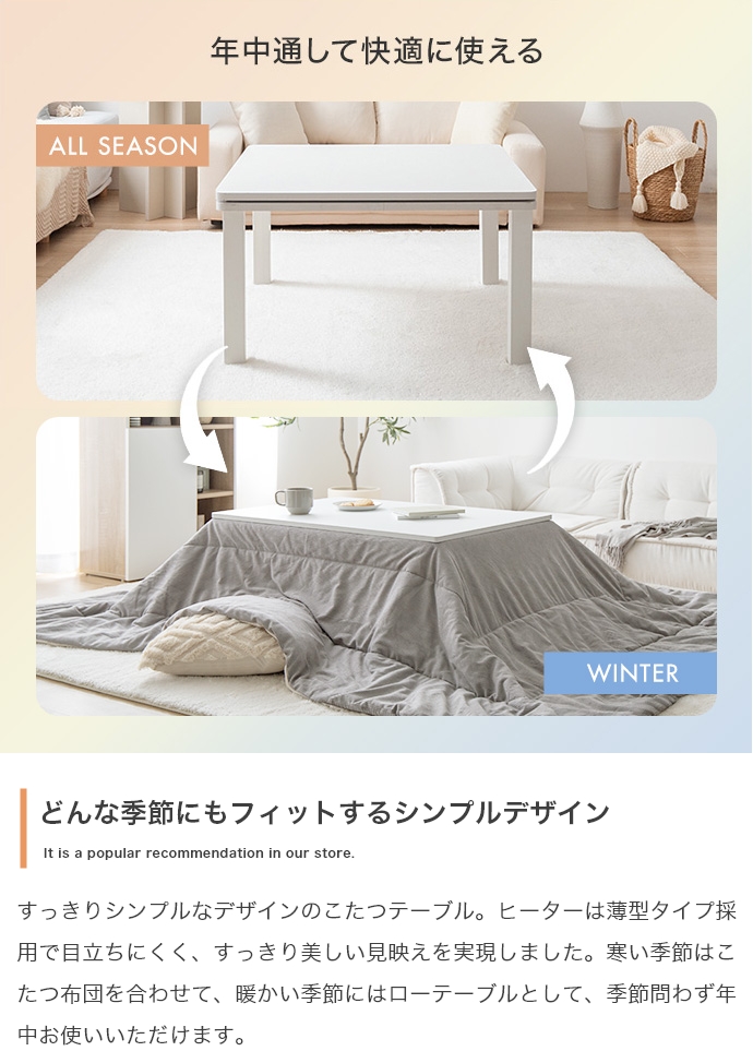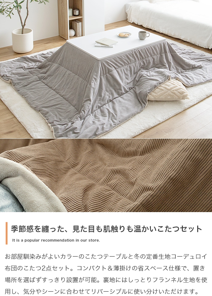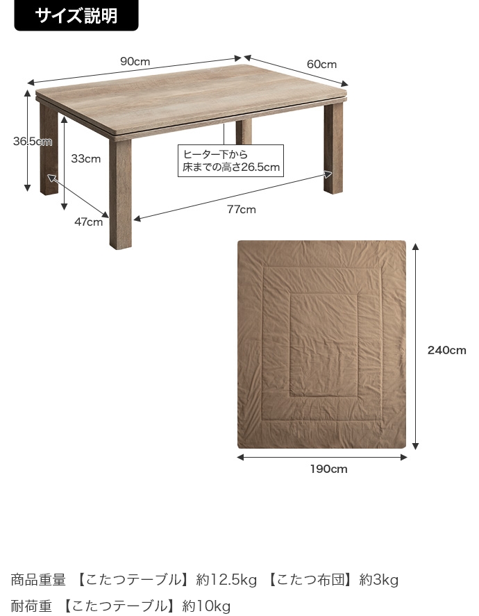 | 重量 | こたつテーブル:約12.5kg こたつ布団:約3kg |