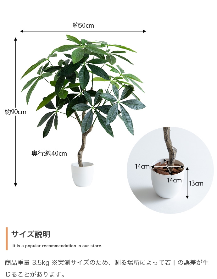 | サイズ | 全体:(約)幅50 × 奥行40 × 高さ90cm 鉢:(約)幅14 × 奥行14 × 高さ13cm |