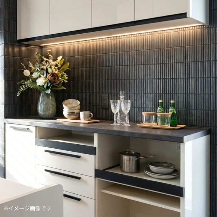 清潔感あふれる「プレーンホワイト」が美しい、国産最高峰パモウナのキッチンカウンターが再入荷しました。