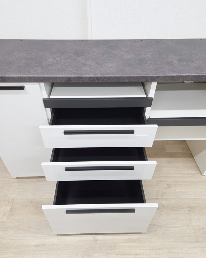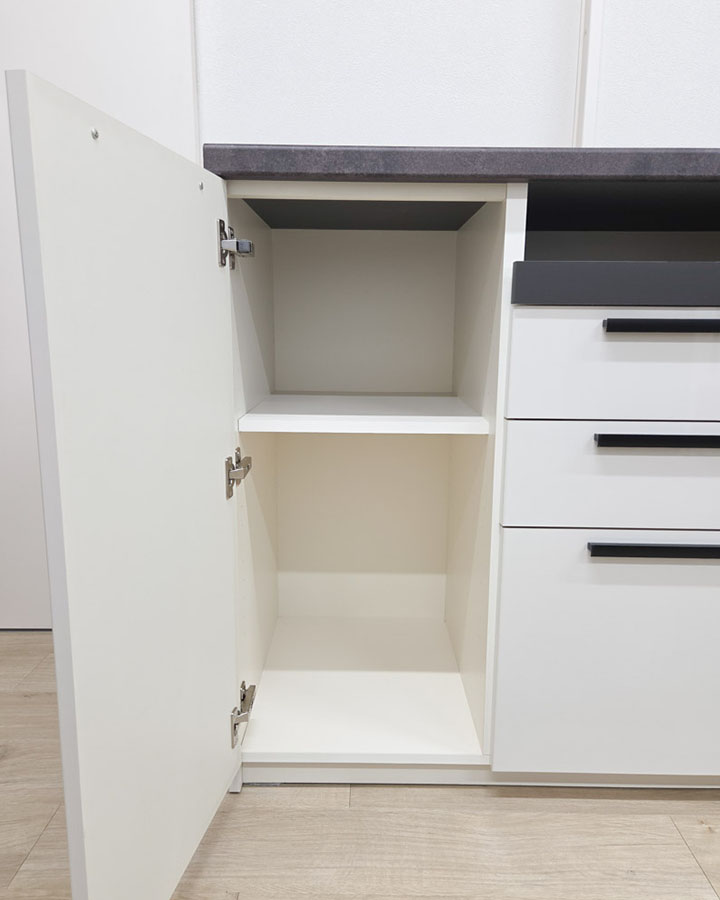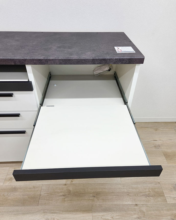 ・幅160cmの広大な作業スペースに加え、右下のオープンスペースへごみ箱をスマートに収容可能です