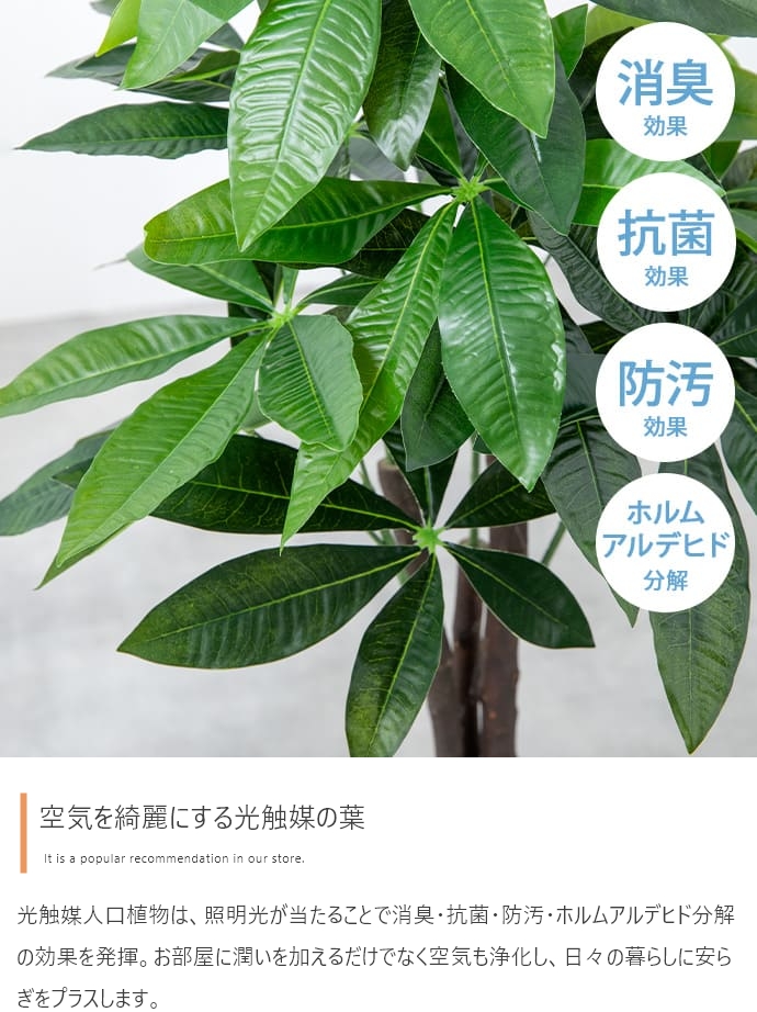 | 素材 | 葉:ポリエステル生地 幹:ポリエチレン 鉢:ポリプロピレン |