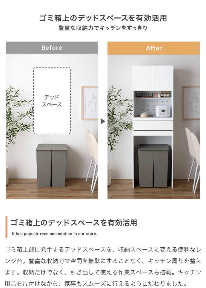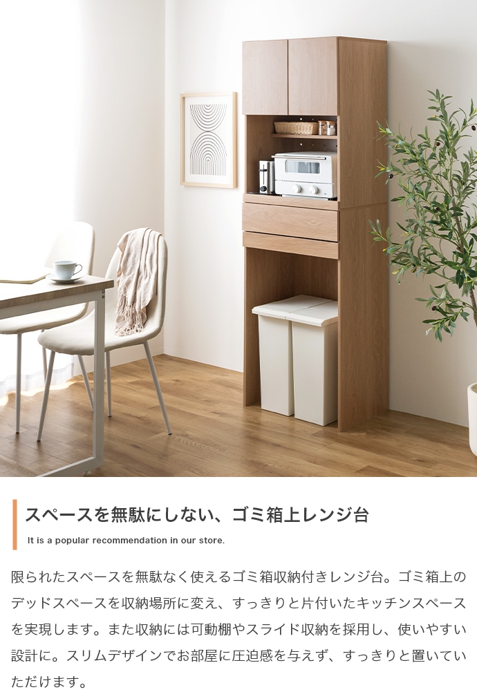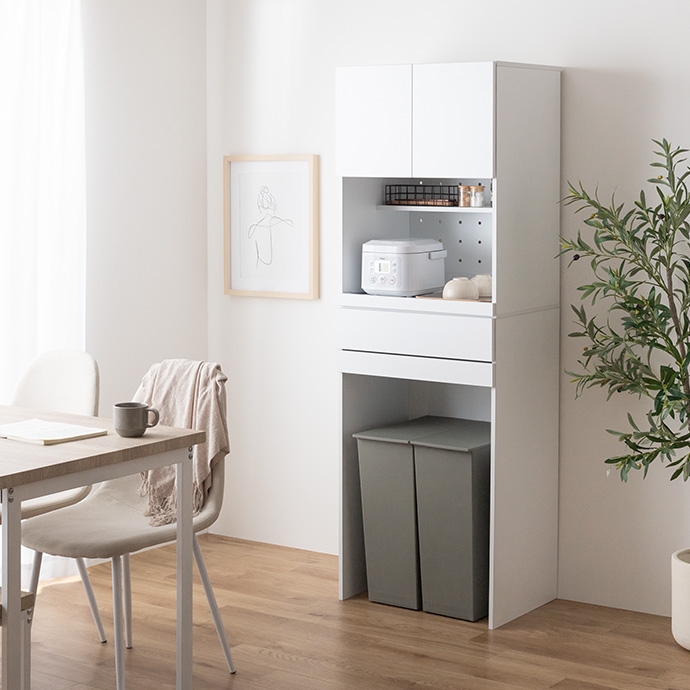 レンジ台 ゴミ箱収納付き 幅58cm 高さ172cm