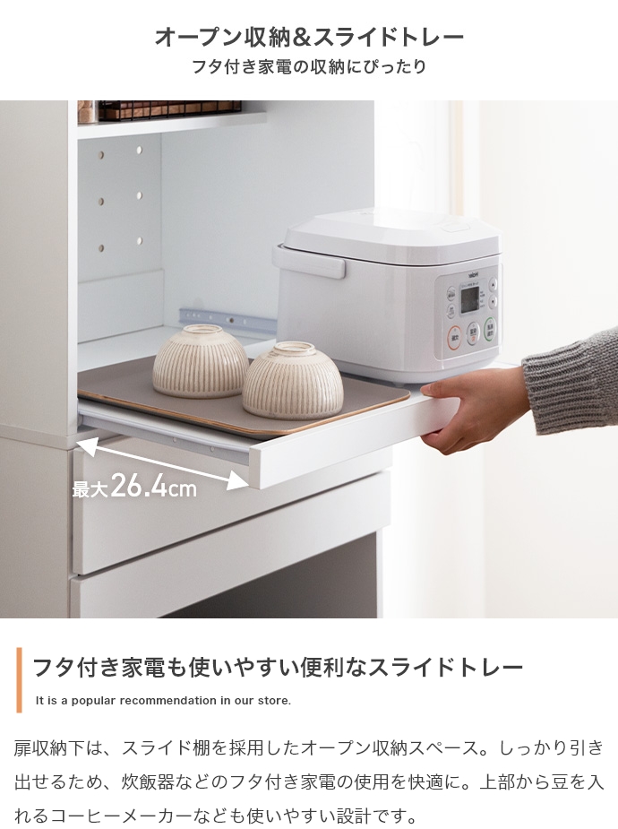 可動棚やスライド収納を搭載し、収納力を確保しながらも、普段の作業がスムーズに進む便利な設計になっています。