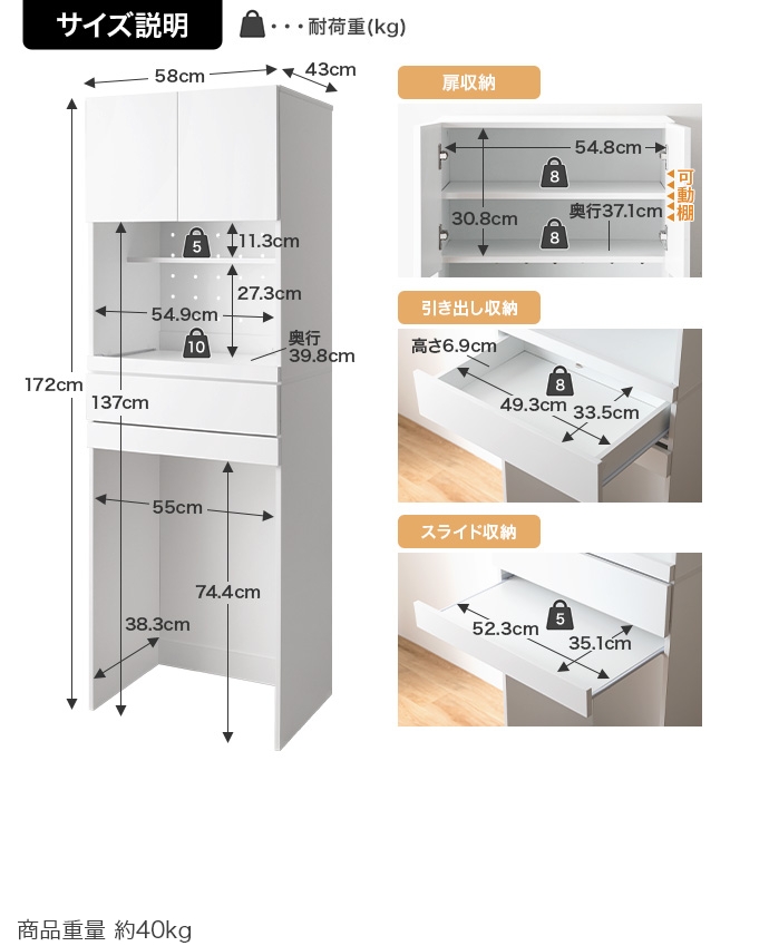 幅58 × 奥行43 × 高さ172cm |