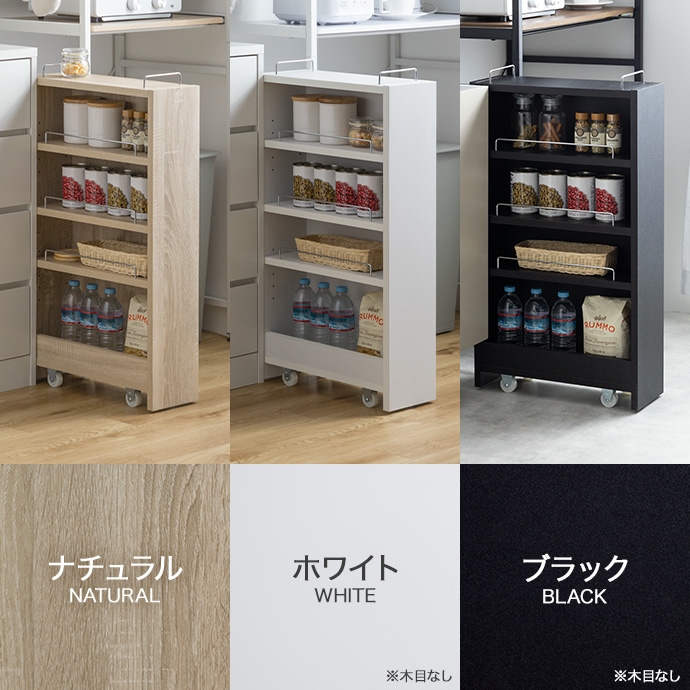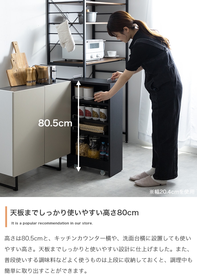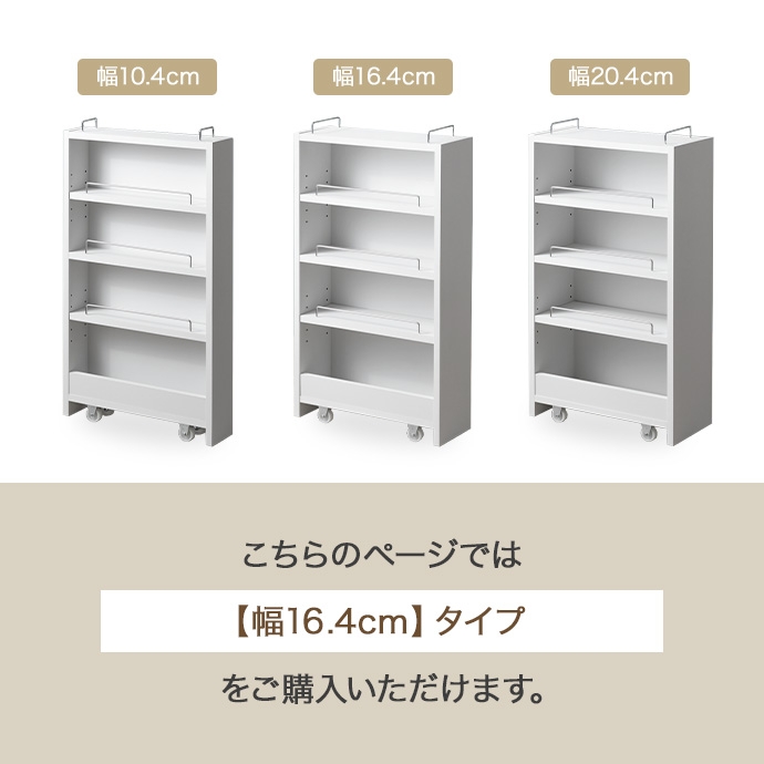 ランドリーやキッチン周りでできる僅かな隙間にぴったりフィット。幅16.4cmのスリム設計で、デッドスペースを有効活用できます。