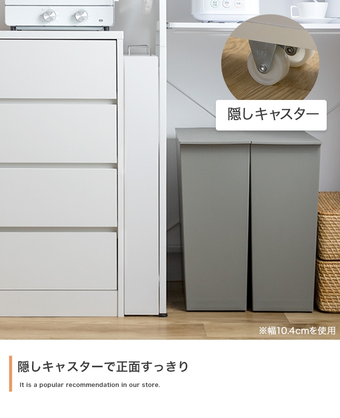 隠しキャスター付きで、見た目はすっきりしたまま、出し入れや移動もスムーズに行えます。