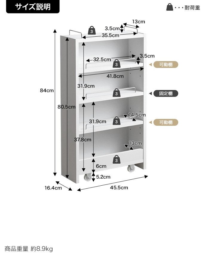 幅16.4 × 奥行45.5 × 高さ84cm |