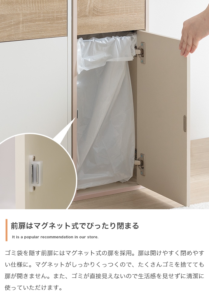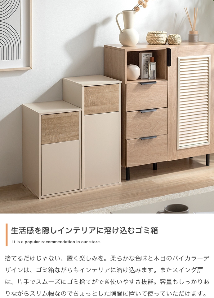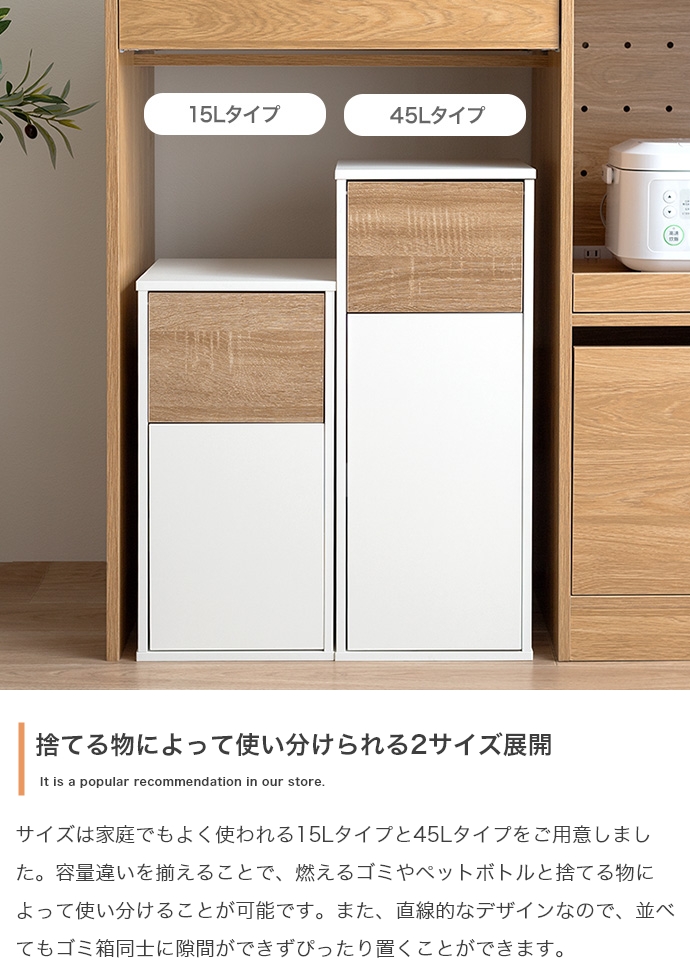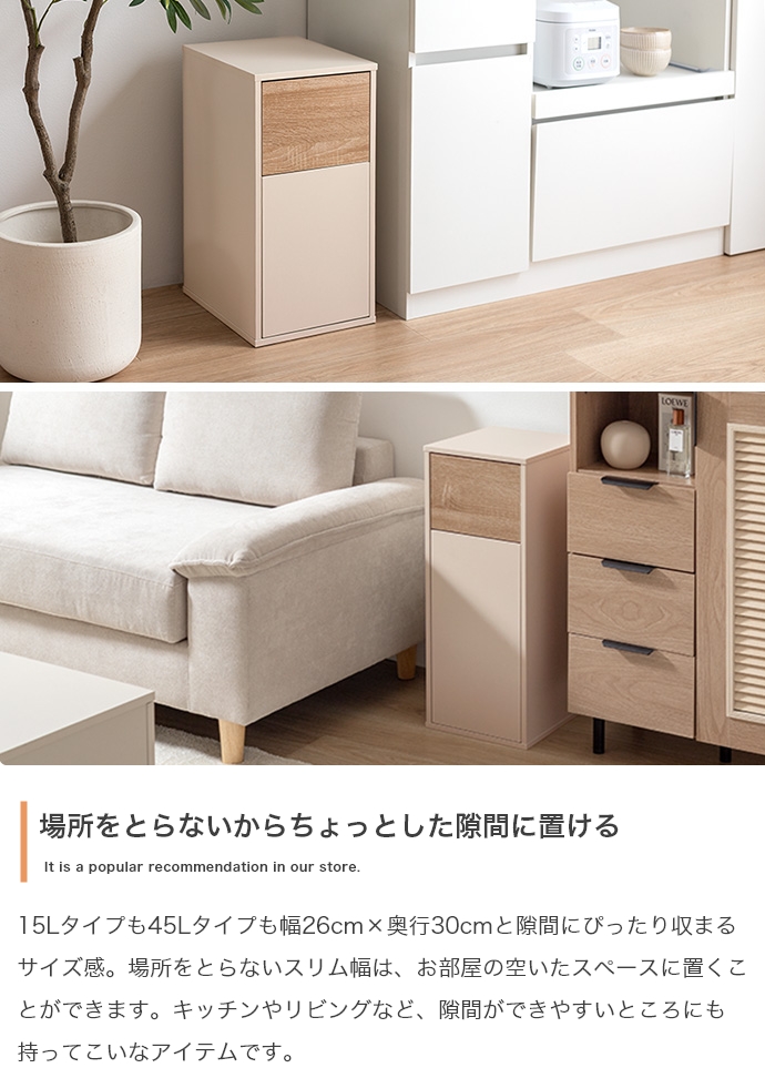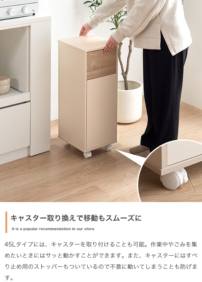 本体はしっかりとした容量(45L)がありながらも、スリム設計のため、お家の隙間に置くこともでき場所をとりません。