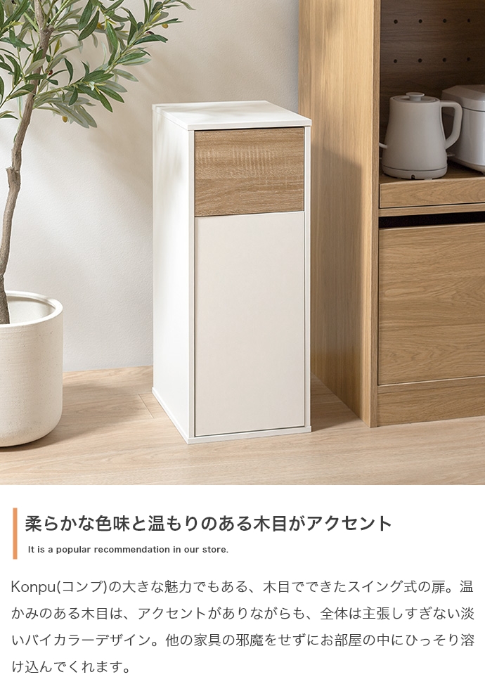 北欧やナチュラルなど幅広いテイストに合わせやすい『Konpu(コンプ)』のゴミ箱。 優しい色合いで温かみのある木目がアクセントのおしゃれなデザインです。
