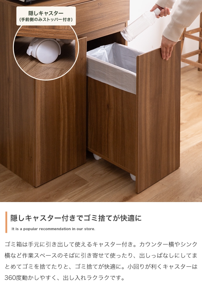 キッチンカウンター ゴミ箱付き 45L×2 幅56cm