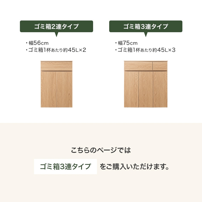 コンパクトなこだわりのサイズ感はゴミ箱上ラックにも入ります。面倒なゴミ出しをより快適にするため、2連タイプと3連タイプの2種類をご用意しました。