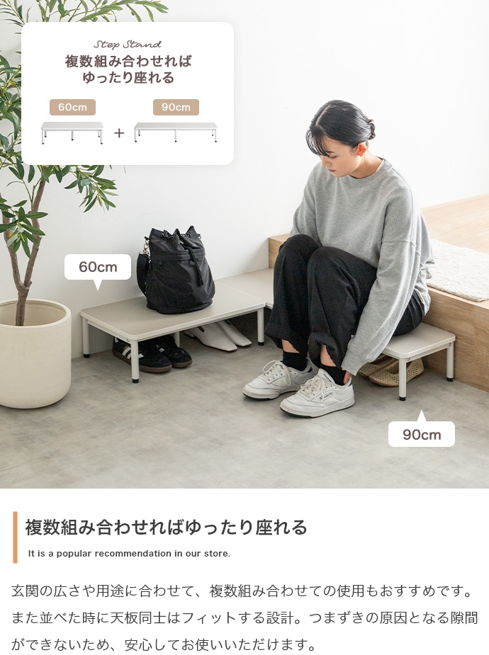 座りながら靴の脱ぎ履きが行えるので、お出かけ前後の動作がスムーズになります。