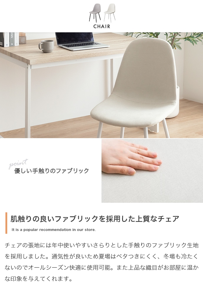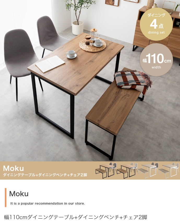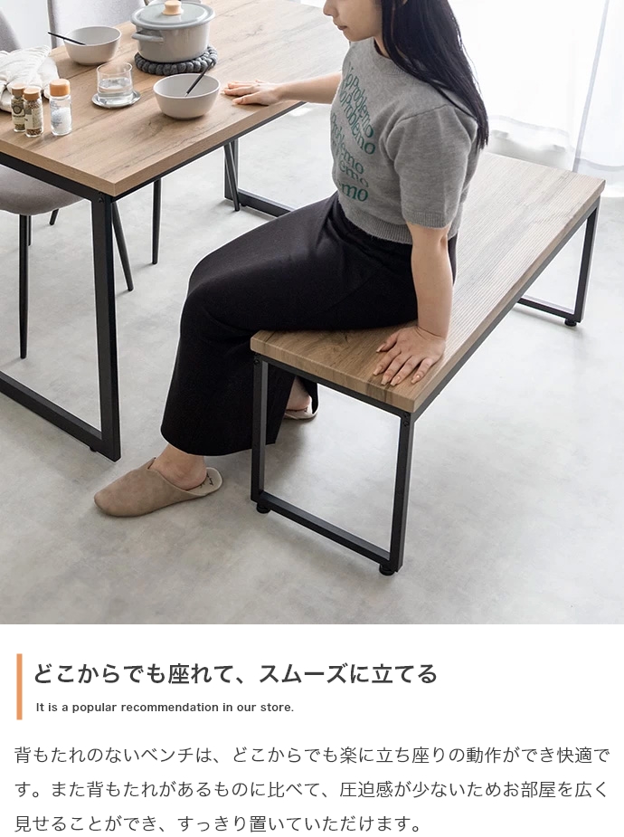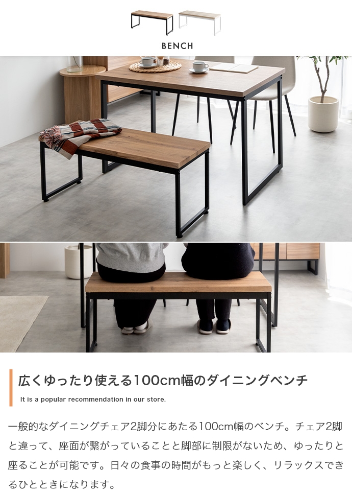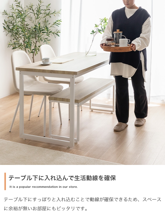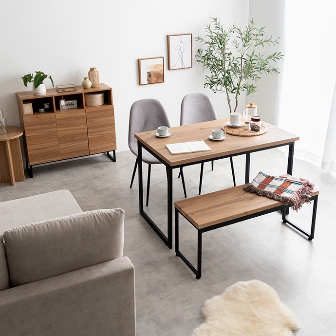 | 素材 | 【テーブル・ベンチ】MDF(PVC貼り) 【チェア】布材:ファブリック、中材:ウレタンフォーム 【テーブル・ベンチ】スチール(粉体塗装) 【チェア】アイアン(粉体塗装) |