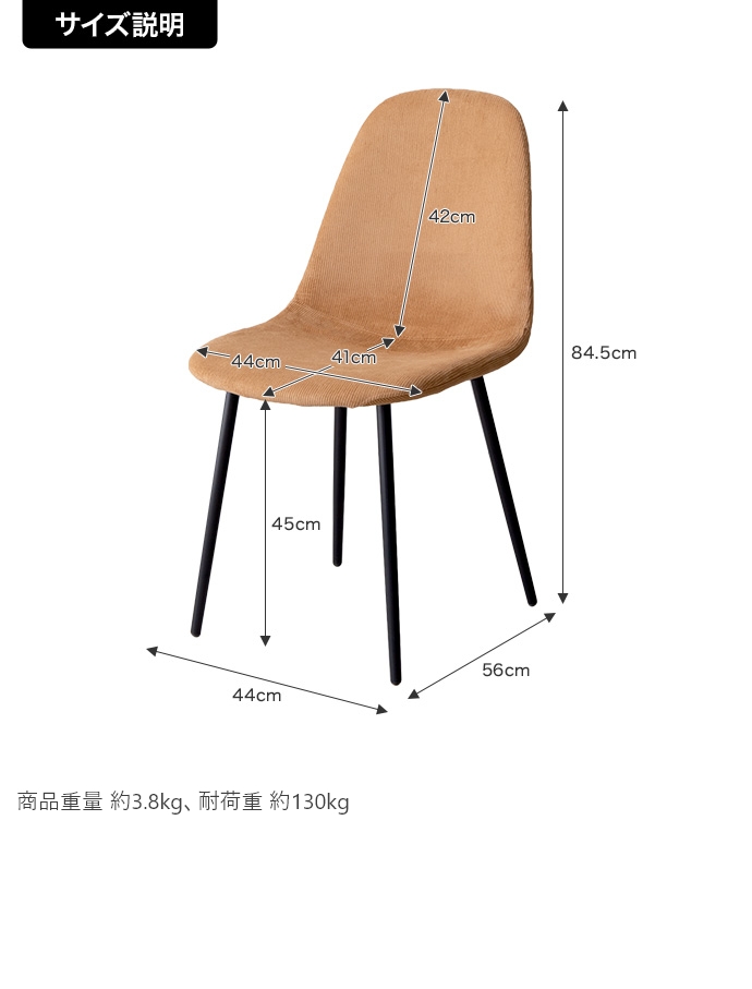 幅44 × 奥行56 ×高さ84.5 × 座面高45cm |