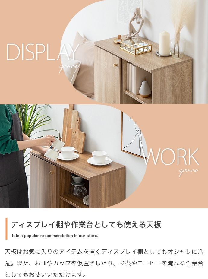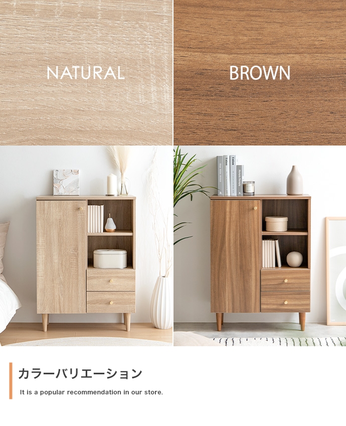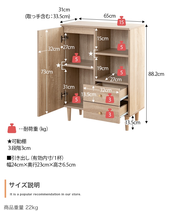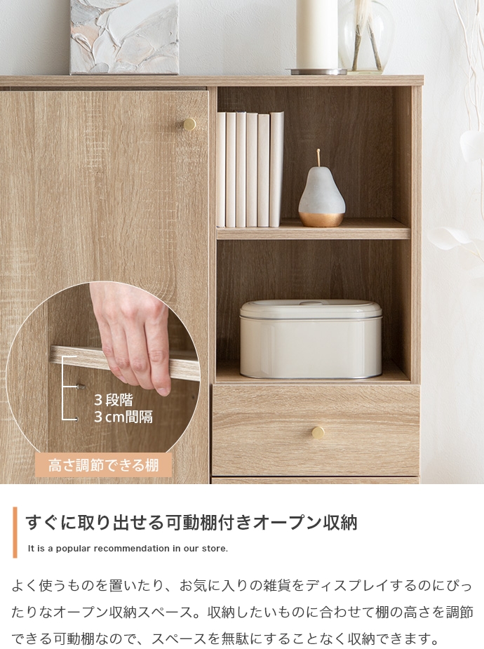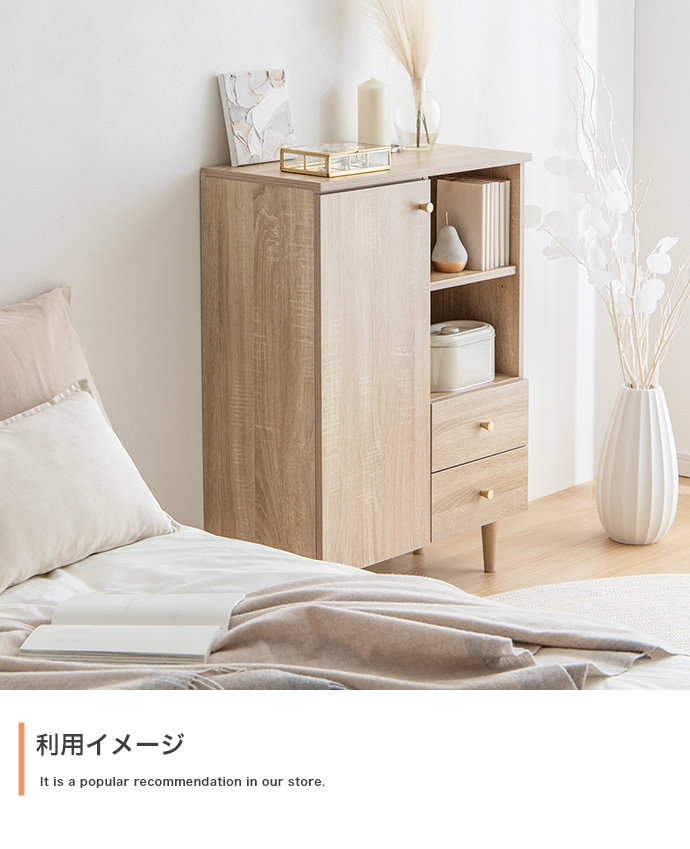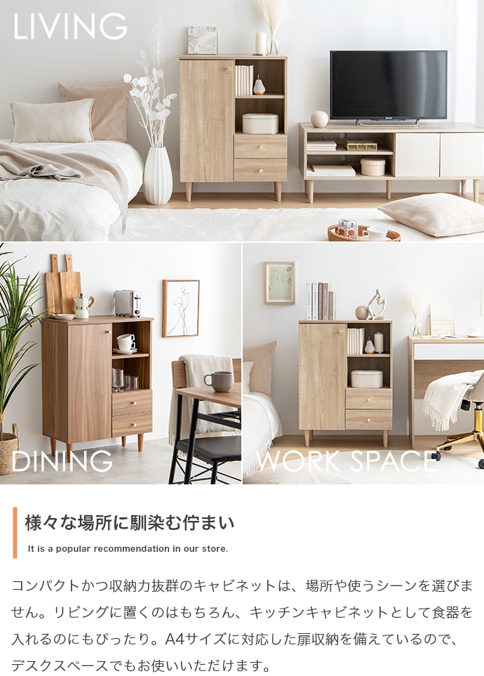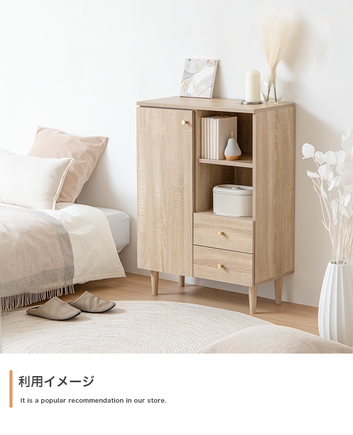 キャビネット 幅65cm コード穴付き 高さ88.2cm ナチュラル