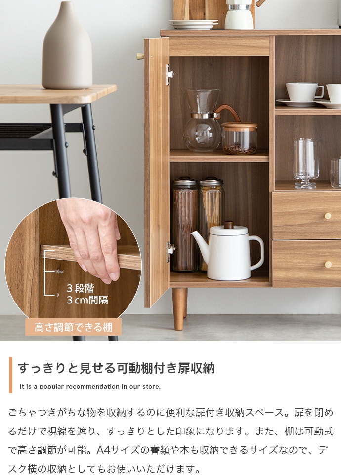 扉収納にはコード穴が開いているので、Wi-Fiルーターなどの収納にもピッタリです。