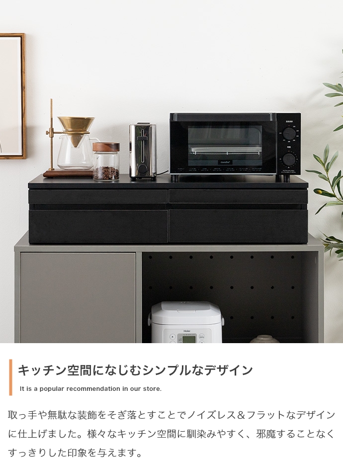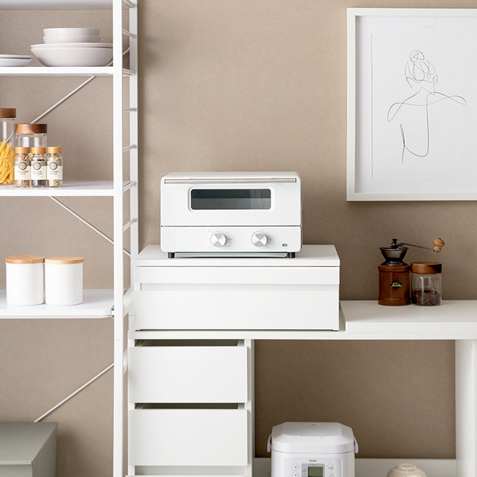 レンジや炊飯器などキッチン家電の下に省スペースで設置できるため、今の環境を大きく変えないまま、作業効率を大幅アップすることが可能です。